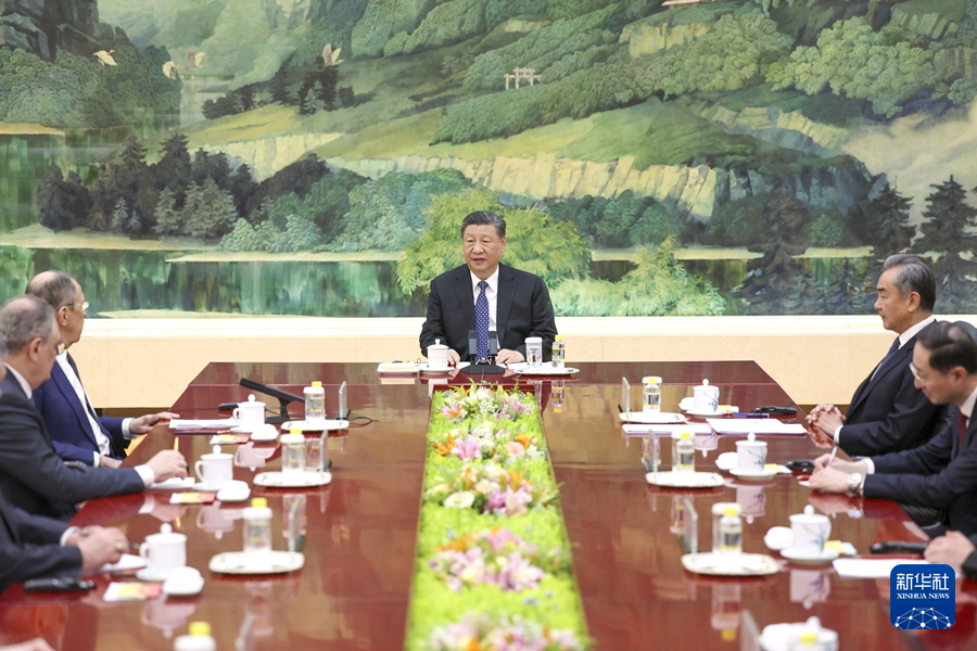 4月9日下午,国家主席习近平在北京人民大会堂会见俄罗斯外长拉夫罗夫。新华社记者 李学仁 摄